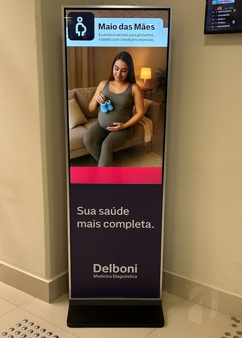 Com tela de 43 polegadas em Full HD e tecnologia de toque de alta precisão, o Totem é ideal para ambientes de grande circulação, proporcionando navegação fluida, leitura confortável e uso contínuo durante todo o evento.